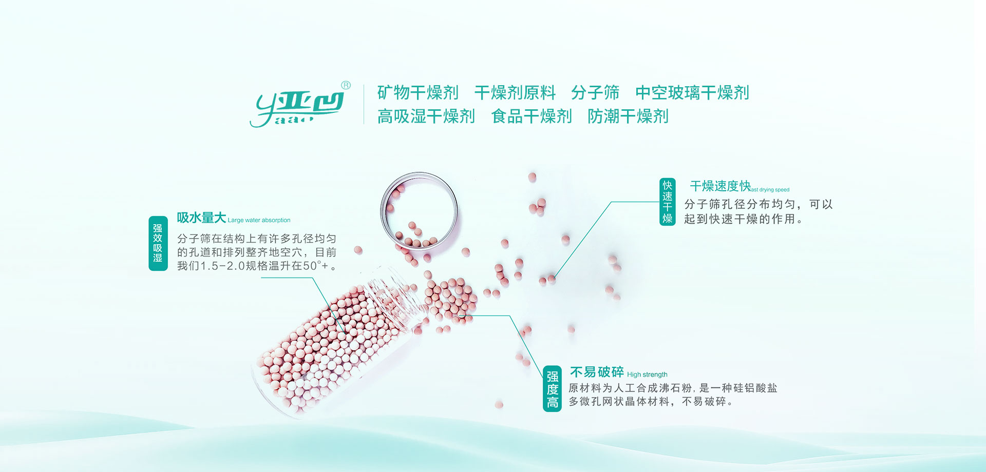 2010年,公司確立剝離非核心業務,專門從事中空玻璃分子篩的研發(fā)、生產和銷售,公司現主營產品包括中空玻璃干燥劑,百葉中空玻璃干燥劑,食用油脫色劑,汽車剎車干燥劑等,產品廣泛應用于玻璃制品、汽車零部件、鞋帽、服裝、箱包、食品等行業,具有無毒、無味、無腐蝕性、性能穩(wěn)定、綠色環(huán)保、吸附性強等特點。